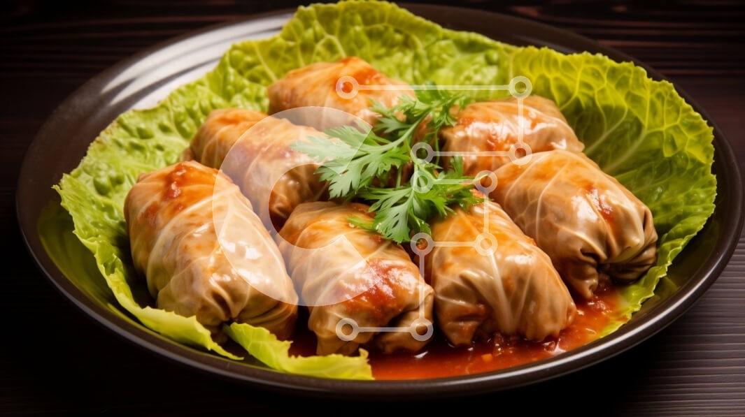 Υπάρχει δυνατότητα προσωποποίησης με δική σας φωτογραφία και προσαρμογής διαστάσεων κατόπιν παραγγελίας. Το συγεκεριμενο puzzle παρουσιαζει Αυτή η εικόνα δείχνει ένα μπολ γεμάτο με γεμιστά ρολά λάχανου, καλυμμένο με μια γευστική σάλτσα και γαρνιρισμένο με φρέσκο μαϊντανό. Το πιάτο τοποθετείται πάνω από φύλλα μαρουλιού, υποδεικνύοντας ότι μπορεί να σερβιριστεί ως ορεκτικό ή μέρος ενός γεύματος. Η σύνθεση του πιάτ