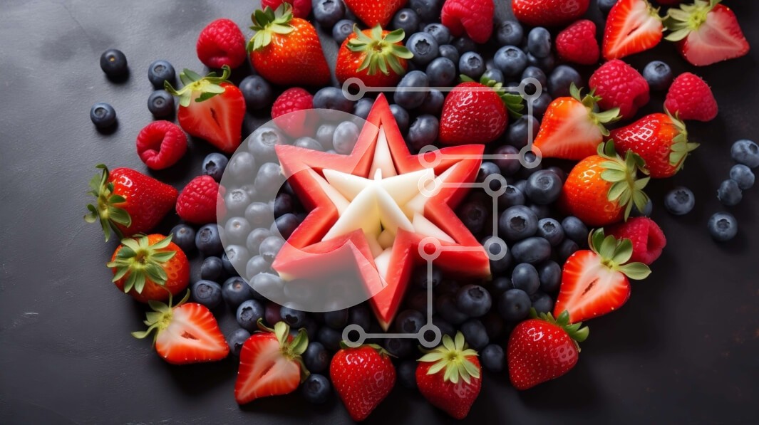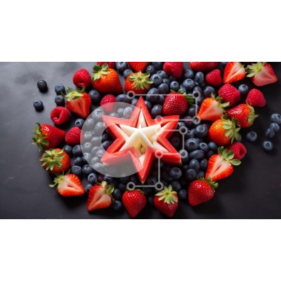 Υπάρχει δυνατότητα προσωποποίησης με δική σας φωτογραφία και προσαρμογής διαστάσεων κατόπιν παραγγελίας. Το συγεκεριμενο puzzle παρουσιαζει Αυτή η εικόνα παρουσιάζει μια εκπληκτική σύνθεση φρούτων σε σχήμα αστεριού με φράουλες, βατόμουρα και σμέουρα. Τα φρούτα είναι σχολαστικά κομμένα σε φέτες και τακτοποιημένα για να δημιουργήσουν μια εντυπωσιακή οθόνη. Επιπλέον φρούτα όπως σταφύλια, ροδάκινα και ανανάδες είναι ε