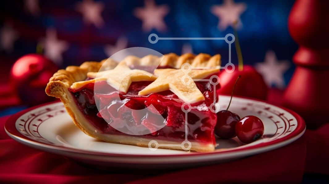 Υπάρχει δυνατότητα προσωποποίησης με δική σας φωτογραφία και προσαρμογής διαστάσεων κατόπιν παραγγελίας. Το συγεκεριμενο puzzle παρουσιαζει Αυτή η εικόνα δείχνει μια φέτα κερασιόπιτας τοποθετημένη σε ένα πιάτο με θέμα την αμερικανική σημαία, με αστέρια και κεράσια ως διακοσμητικά. Προκαλεί πατριωτικό πνεύμα, υποδηλώνοντας ότι είναι τέλειο για τους εορτασμούς της 4ης Ιουλίου. Η σκηνή ενισχύεται περαιτέρω από κόκκιν