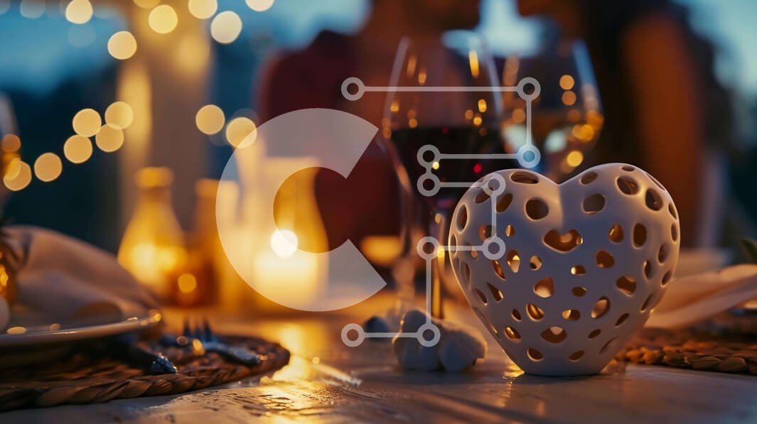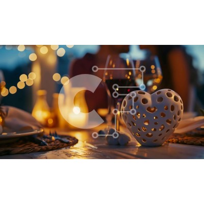 Υπάρχει δυνατότητα προσωποποίησης με δική σας φωτογραφία και προσαρμογής διαστάσεων κατόπιν παραγγελίας. Το συγεκεριμενο puzzle παρουσιαζει Αυτή η εικόνα παρουσιάζει μια ρομαντική ρύθμιση τραπεζιού για δείπνο. Το τραπέζι είναι στολισμένο με ποτήρια κρασιού, πιάτα και σκεύη, δημιουργώντας μια φιλόξενη ατμόσφαιρα για ένα κοινό γεύμα. Ένα βάζο σε σχήμα καρδιάς χρησιμεύει ως κεντρικό στοιχείο, συμβολίζοντας την αγάπη