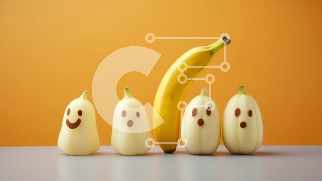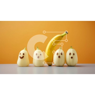 Υπάρχει δυνατότητα προσωποποίησης με δική σας φωτογραφία και προσαρμογής διαστάσεων κατόπιν παραγγελίας. Το συγεκεριμενο puzzle παρουσιαζει Αυτή η εικόνα παρουσιάζει πέντε μπανάνες διατεταγμένες σε μια σειρά με πρόσωπα ζωγραφισμένα πάνω τους. Τοποθετούνται σε ένα τραπέζι με πορτοκαλί φόντο, δημιουργώντας μια ζωντανή και παιχνιδιάρικη σύνθεση. Η μεγάλη μπανάνα στο τέλος δείχνει ότι είναι ακόμα φρέσκια και έτοιμη γι