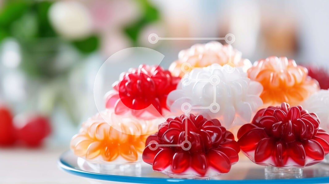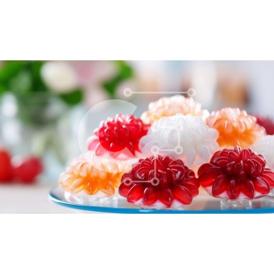 Υπάρχει δυνατότητα προσωποποίησης με δική σας φωτογραφία και προσαρμογής διαστάσεων κατόπιν παραγγελίας. Το συγεκεριμενο puzzle παρουσιαζει Η εικόνα παρουσιάζει ένα γυάλινο πιάτο γεμάτο με πολλά πολύχρωμα λουλούδια ζελέ, τα οποία είναι τοποθετημένα το ένα πάνω στο άλλο για να σχηματίσουν μια διάταξη. Μερικά μικρά φυτά σε γλάστρες στο φόντο υποδηλώνουν ότι μπορεί να είναι μέρος της οθόνης. Συνολικά, η εικόνα αποτυπ