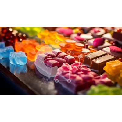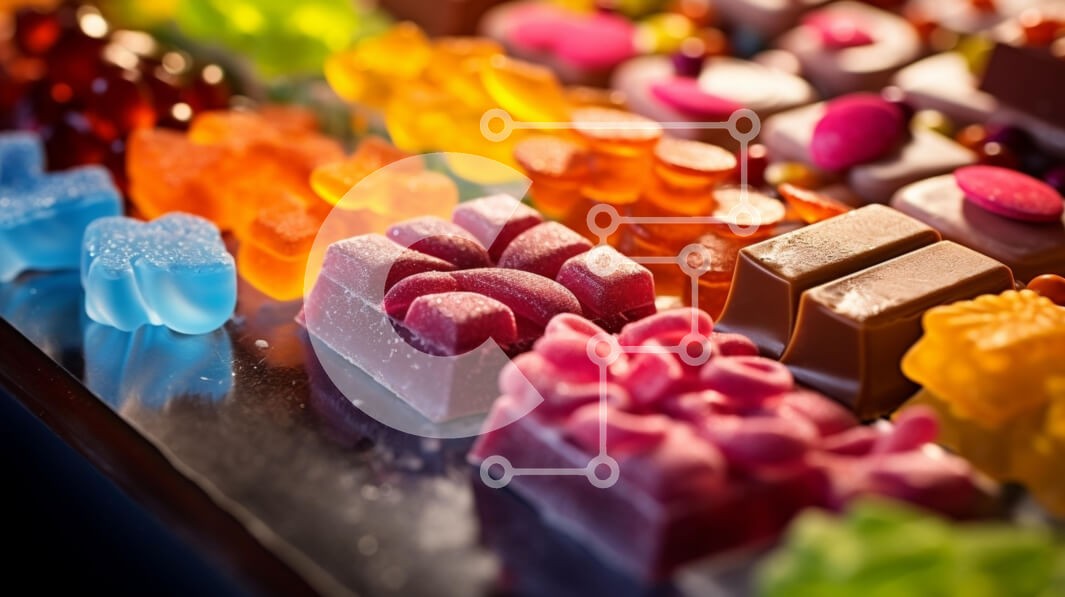 Υπάρχει δυνατότητα προσωποποίησης με δική σας φωτογραφία και προσαρμογής διαστάσεων κατόπιν παραγγελίας. Το συγεκεριμενο puzzle παρουσιαζει Αυτή η εικόνα παρουσιάζει μια ζωντανή ποικιλία από πολύχρωμες καραμέλες και σοκολάτες που εμφανίζονται σε μια ανακλαστική επιφάνεια. Η σκηνή είναι γεμάτη με διάφορα σχήματα και μεγέθη γλυκών λιχουδιών, συμπεριλαμβανομένων κομμένων αρκούδων, φρουτωδών ζαχαρωτών ζελέ και κομματι