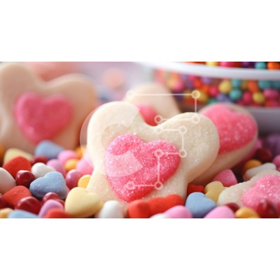 Υπάρχει δυνατότητα προσωποποίησης με δική σας φωτογραφία και προσαρμογής διαστάσεων κατόπιν παραγγελίας. Το συγεκεριμενο puzzle παρουσιαζει Αυτή η εικόνα παρουσιάζει ένα μπολ γεμάτο με πολύχρωμες καραμέλες, συμπεριλαμβανομένων μπισκότων σε σχήμα καρδιάς, διακοσμημένα με γλάσο και πασπάλισμα. Υπάρχουν επίσης διάφορα είδη καραμέλας διάσπαρτα γύρω από το μπολ, όπως ζελέ, τσίχλες και άλλες γλυκές λιχουδιές. Επιπλέον,