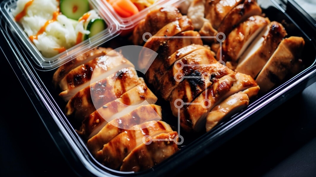 Υπάρχει δυνατότητα προσωποποίησης με δική σας φωτογραφία και προσαρμογής διαστάσεων κατόπιν παραγγελίας. Το συγεκεριμενο puzzle παρουσιαζει Η εικόνα απεικονίζει έναν μαύρο δίσκο με πολλά δοχεία γεμάτα με κοτόπουλο, λαχανικά και καρυκεύματα. Το κοτόπουλο τοποθετείται στη μέση του δίσκου, ενώ τα λαχανικά τοποθετούνται εκατέρωθεν του. Υπάρχουν επίσης μικρά κομμάτια από καρότα και αγγούρια που βρίσκονται κοντά στο κοτ