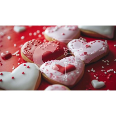 Υπάρχει δυνατότητα προσωποποίησης με δική σας φωτογραφία και προσαρμογής διαστάσεων κατόπιν παραγγελίας. Το συγεκεριμενο puzzle παρουσιαζει Αυτή η εικόνα παρουσιάζει πολλά μπισκότα σε σχήμα καρδιάς τοποθετημένα σε ένα κόκκινο τραπέζι. Είναι διακοσμημένα με ροζ, λευκά και κόκκινα πασπαλίσματα, υποδηλώνοντας ότι φτιάχτηκαν για να γιορτάσουν την Ημέρα του Αγίου Βαλεντίνου. Υπάρχουν επίσης μερικές μικρές καρδιές διάσπ