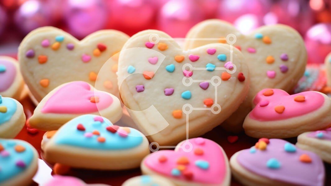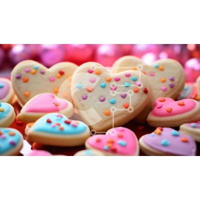 Υπάρχει δυνατότητα προσωποποίησης με δική σας φωτογραφία και προσαρμογής διαστάσεων κατόπιν παραγγελίας. Το συγεκεριμενο puzzle παρουσιαζει Αυτή η εικόνα παρουσιάζει μια συλλογή από μπισκότα σε σχήμα καρδιάς διακοσμημένα με πολύχρωμα ψεκάσματα. Τα μπισκότα εμφανίζονται σε ένα κόκκινο πιάτο μαζί με διακοσμητικά για την Ημέρα του Αγίου Βαλεντίνου, όπως μπαλόνια και καρδιές. Αυτά τα μπισκότα είναι ένα τέλειο δώρο για