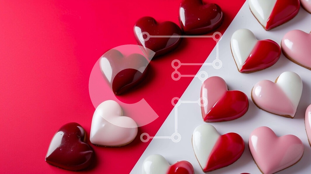 Υπάρχει δυνατότητα προσωποποίησης με δική σας φωτογραφία και προσαρμογής διαστάσεων κατόπιν παραγγελίας. Το συγεκεριμενο puzzle παρουσιαζει Αυτή η εικόνα παρουσιάζει μια διάταξη από μπισκότα σε σχήμα καρδιάς σε ένα ζωντανό κόκκινο και λευκό φόντο. Τα μπισκότα έχουν δημιουργικό σχήμα, συμπεριλαμβανομένων καρδιών, τετραγώνων και τριγώνων. Μερικά από τα μπισκότα είναι διακοσμημένα με φοντάν, ενώ άλλα παρουσιάζουν μια