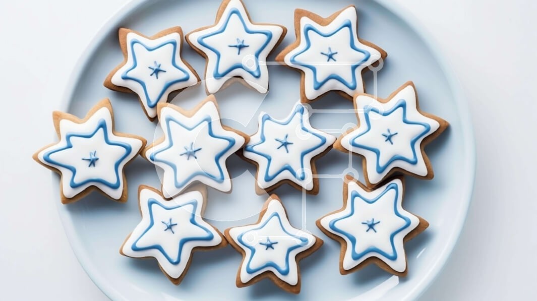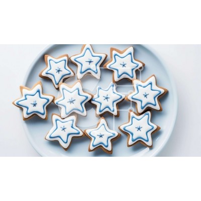 Υπάρχει δυνατότητα προσωποποίησης με δική σας φωτογραφία και προσαρμογής διαστάσεων κατόπιν παραγγελίας. Το συγεκεριμενο puzzle παρουσιαζει Αυτή η εικόνα παρουσιάζει ένα πιάτο με μπισκότα σε σχήμα αστεριού διακοσμημένα με μπλε και λευκά αστέρια. Τα μπισκότα τοποθετούνται σε ένα πιάτο, το οποίο μπορεί να χρησιμοποιηθεί για να τα σερβίρετε ή να τα εμφανίσετε. Υπάρχουν πολλά διαφορετικά σχήματα και μεγέθη μπισκότων σ