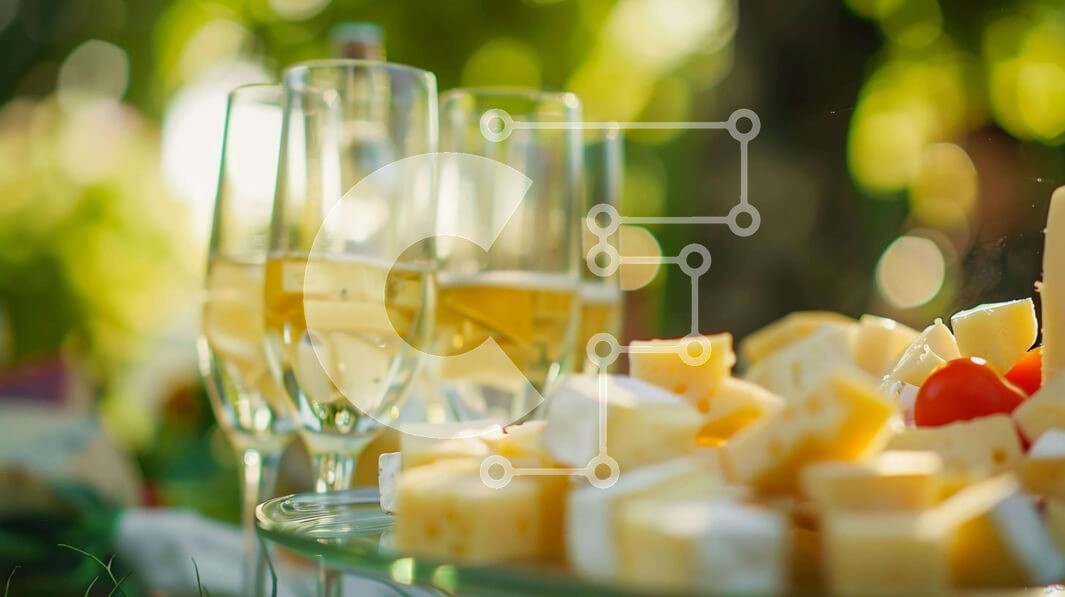 Υπάρχει δυνατότητα προσωποποίησης με δική σας φωτογραφία και προσαρμογής διαστάσεων κατόπιν παραγγελίας. Το συγεκεριμενο puzzle παρουσιαζει Η εικόνα δείχνει μια πιατέλα με τυρί, ντομάτες και σταφύλια σε συνδυασμό με δύο ποτήρια κρασί. Η ρύθμιση φαίνεται να είναι σε εξωτερικό χώρο με κομμάτια ψωμιού στο πιάτο. Μια φέτα ντομάτας κοντά σε ένα από τα ποτήρια ενισχύει τη σύνθεση. Ένα μοναδικό puzzle που συνδυάζει ποιό