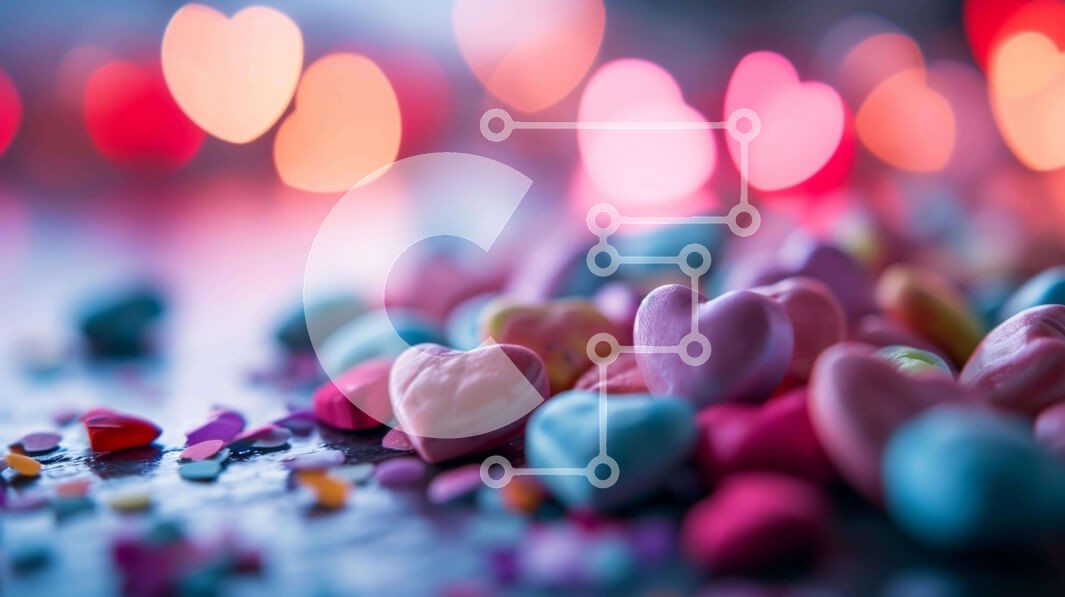 Υπάρχει δυνατότητα προσωποποίησης με δική σας φωτογραφία και προσαρμογής διαστάσεων κατόπιν παραγγελίας. Το συγεκεριμενο puzzle παρουσιαζει Αυτή η εικόνα παρουσιάζει μια συλλογή από πολύχρωμες καραμέλες σε σχήμα καρδιάς τοποθετημένες σε ένα τραπέζι. Οι καραμέλες έρχονται σε διάφορα σχήματα και ζωηρά χρώματα, όπως κόκκινο, ροζ, κίτρινο, πράσινο, μπλε και μοβ. Το σκηνικό ενισχύεται περαιτέρω από την παρουσία κομφετί