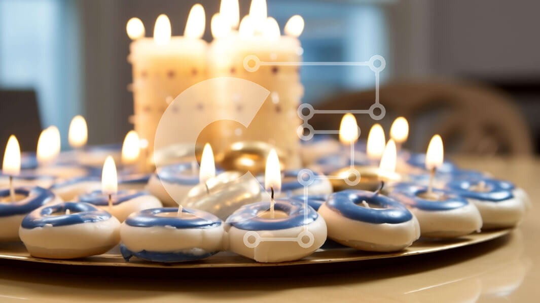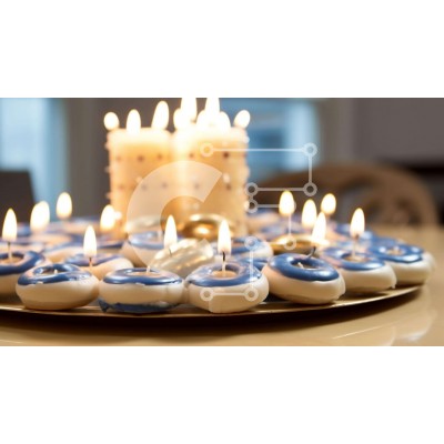 Υπάρχει δυνατότητα προσωποποίησης με δική σας φωτογραφία και προσαρμογής διαστάσεων κατόπιν παραγγελίας. Το συγεκεριμενο puzzle παρουσιαζει Αυτή η εικόνα παρουσιάζει έναν δίσκο με νόστιμα ντόνατς διακοσμημένα με μπλε, λευκά και κίτρινα κεριά. Τα ζωηρά χρώματα και η γιορτινή ατμόσφαιρα το κάνουν ιδανικό για γιορτές. Τα κεριά είναι δημιουργικά τοποθετημένα στο δίσκο, με μερικά να αιωρούνται στον αέρα. Στο κέντρο του