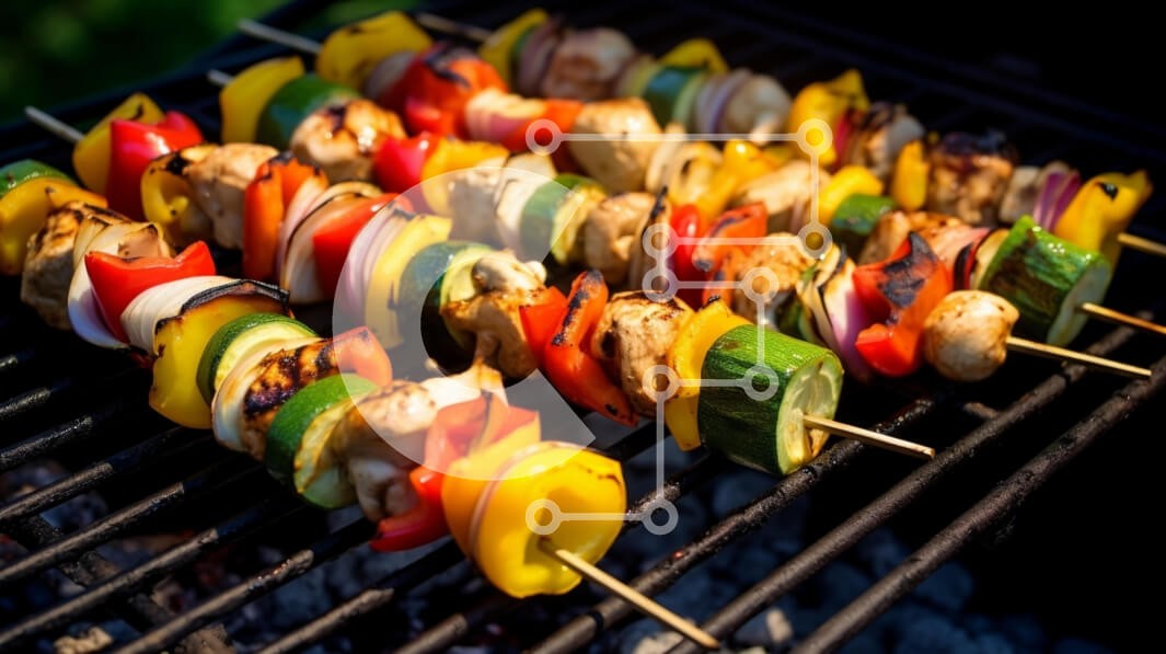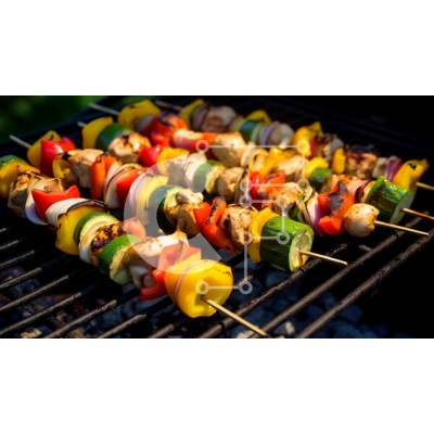 Υπάρχει δυνατότητα προσωποποίησης με δική σας φωτογραφία και προσαρμογής διαστάσεων κατόπιν παραγγελίας. Το συγεκεριμενο puzzle παρουσιαζει Η εικόνα δείχνει μια ζωντανή σειρά από σουβλάκια που ψήνονται στη σχάρα σε μπάρμπεκιου. Κάθε σουβλάκι είναι γεμάτο με μια ποικιλία από πολύχρωμα λαχανικά, όπως πιπεριές, κολοκυθάκια και κρεμμύδια, αναμεμειγμένα με κομμάτια κοτόπουλου. Τα σουβλάκια τοποθετούνται σε μια ζεστή σχ