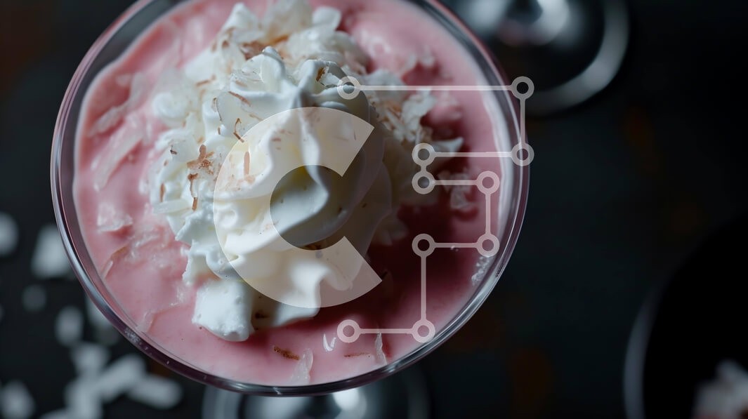 Υπάρχει δυνατότητα προσωποποίησης με δική σας φωτογραφία και προσαρμογής διαστάσεων κατόπιν παραγγελίας. Το συγεκεριμενο puzzle παρουσιαζει Η εικόνα δείχνει ένα απολαυστικό ροζ επιδόρπιο με σαντιγί και τρίμματα καρύδας, σερβιρισμένο σε ποτήρι. Γύρω από το πιάτο υπάρχουν διάφορα κομμάτια φρέσκων φρούτων, που υποδηλώνουν τη χρήση τους είτε ως ορεκτικό είτε ως επιδόρπιο. Το πιάτο στολίζεται με γαρνιτούρες όπως αμύγδα