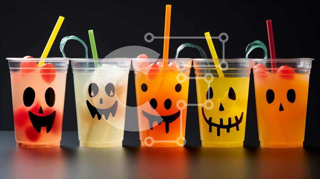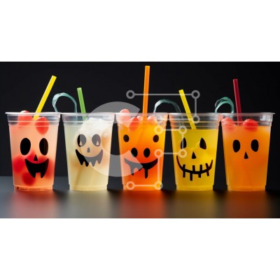Υπάρχει δυνατότητα προσωποποίησης με δική σας φωτογραφία και προσαρμογής διαστάσεων κατόπιν παραγγελίας. Το συγεκεριμενο puzzle παρουσιαζει Αυτή η εικόνα παρουσιάζει μια σειρά από πλαστικά κύπελλα γεμάτα με διαφορετικούς τύπους ποτών, όπως χυμό μήλου, λεμονάδα και χυμό πορτοκαλιού. Τα κύπελλα είναι διακοσμημένα με χαριτωμένα πρόσωπα κολοκύθας και έχουν πολύχρωμα καλαμάκια. Υπάρχουν επίσης κομμάτια καραμέλας στο τρ