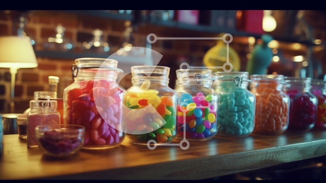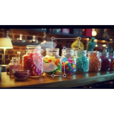 Υπάρχει δυνατότητα προσωποποίησης με δική σας φωτογραφία και προσαρμογής διαστάσεων κατόπιν παραγγελίας. Το συγεκεριμενο puzzle παρουσιαζει Η εικόνα παρουσιάζει μια ζωντανή σειρά από πολύχρωμες καραμέλες που εμφανίζονται σε γυάλινα βάζα σε ένα ξύλινο ράφι. Κάθε βάζο είναι γεμάτο με διαφορετικούς τύπους γλυκών, όπως σε σχήμα καρδιάς, ζελέ φασόλια και άλλα διάφορα γλυκίσματα σε έντονες αποχρώσεις του ροζ, του πράσιν