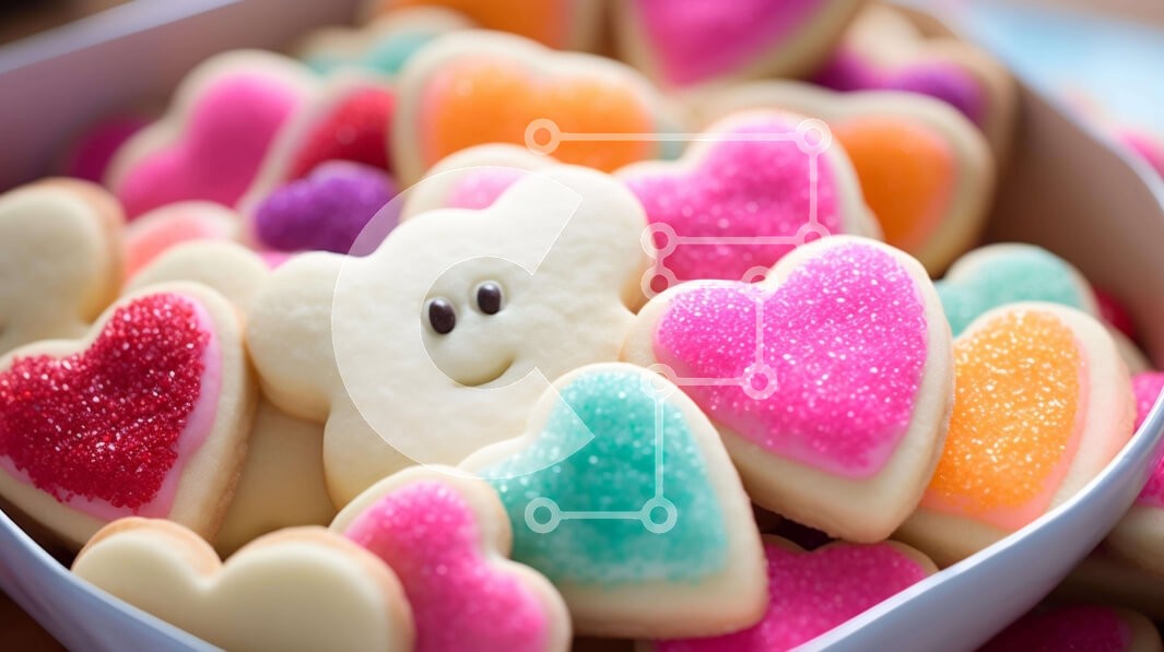 Υπάρχει δυνατότητα προσωποποίησης με δική σας φωτογραφία και προσαρμογής διαστάσεων κατόπιν παραγγελίας. Το συγεκεριμενο puzzle παρουσιαζει Αυτή η εικόνα παρουσιάζει ένα μπολ γεμάτο με πολύχρωμα μπισκότα σε σχήμα καρδιάς σε διάφορα σχήματα και χρώματα. Τα μπισκότα είναι διατεταγμένα σε σχήμα καρδιών στο τραπέζι, με επιπλέον μπισκότα σε σχήματα αστεριών, κύκλων και τριγώνων διάσπαρτα σε όλο το μπολ. Ένα μοναδικό p