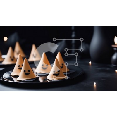 Υπάρχει δυνατότητα προσωποποίησης με δική σας φωτογραφία και προσαρμογής διαστάσεων κατόπιν παραγγελίας. Το συγεκεριμενο puzzle παρουσιαζει Αυτή η εικόνα παρουσιάζει μπισκότα σε σχήμα φαντασμάτων που είναι ιδανικά για αποκριάτικα πάρτι και γιορτές. Τα μπισκότα είναι διακοσμημένα σε μορφή κώνων με όψεις από φοντάν και τοποθετούνται σε ένα μαύρο πιάτο δίπλα σε κεριά και άλλα διακοσμητικά για το Halloween. Αυτά τα μπ