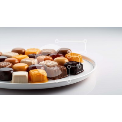 Υπάρχει δυνατότητα προσωποποίησης με δική σας φωτογραφία και προσαρμογής διαστάσεων κατόπιν παραγγελίας. Το συγεκεριμενο puzzle παρουσιαζει Αυτή η εικόνα δείχνει ένα λευκό πιάτο γεμάτο με διάφορους τύπους καραμέλες, όπως σοκολάτες, ξηρούς καρπούς και καραμέλες. Τα ζαχαρωτά είναι διατεταγμένα σε διαφορετικά σχήματα και μεγέθη, μερικά στοιβάζονται το ένα πάνω στο άλλο ενώ άλλα απλώνονται σε όλο το πιάτο. Ένα μοναδι