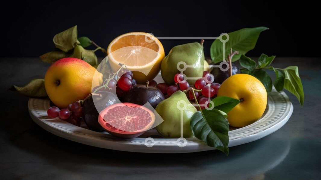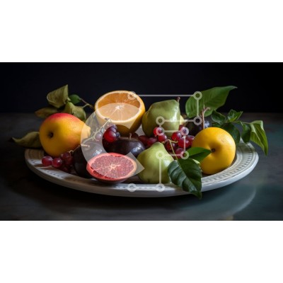 Υπάρχει δυνατότητα προσωποποίησης με δική σας φωτογραφία και προσαρμογής διαστάσεων κατόπιν παραγγελίας. Το συγεκεριμενο puzzle παρουσιαζει Αυτή η εικόνα παρουσιάζει ένα πιάτο γεμάτο με μια ποικιλία από φρέσκα και πολύχρωμα φρούτα, όπως πορτοκάλια, σταφύλια και ρόδια. Το πιάτο είναι τοποθετημένο με έναν αισθητικά ευχάριστο τρόπο για να αναδεικνύει τα χρώματα και τις υφές των διαφόρων φρούτων. Ένα μοναδικό puzzle