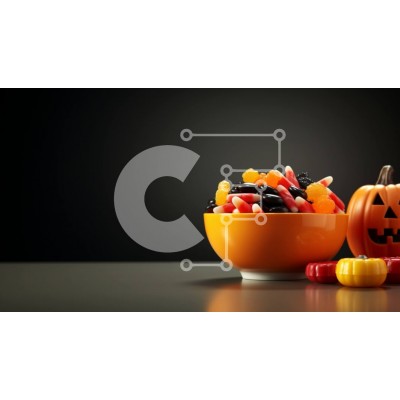 Υπάρχει δυνατότητα προσωποποίησης με δική σας φωτογραφία και προσαρμογής διαστάσεων κατόπιν παραγγελίας. Το συγεκεριμενο puzzle παρουσιαζει Αυτή η εικόνα δείχνει ένα μπολ γεμάτο με διάφορους τύπους καραμέλας, συμπεριλαμβανομένων των κολλωδών σκουληκιών, των κολλωδών αρκούδων και των κολοκυθιών. Η καραμέλα είναι τοποθετημένη με διακοσμητικό τρόπο, με μερικά κομμάτια να παίρνουν το σχήμα φαναριών. Το μπολ τοποθετείτ
