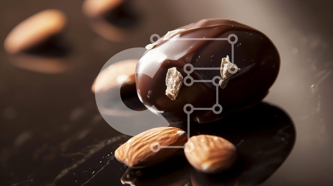 Υπάρχει δυνατότητα προσωποποίησης με δική σας φωτογραφία και προσαρμογής διαστάσεων κατόπιν παραγγελίας. Το συγεκεριμενο puzzle παρουσιαζει Η εικόνα δείχνει μια μπάλα αμυγδάλου καλυμμένη με σοκολάτα που περιβάλλεται από ξετυλιγμένα αμύγδαλα σε ένα τραπέζι. Η σοκολατένια μπάλα είναι επικαλυμμένη με μαύρη σοκολάτα και υπάρχουν πολλά κομμάτια σοκολάτας και αμύγδαλα απλωμένα σε όλη την επιφάνεια, δημιουργώντας μια φιλ