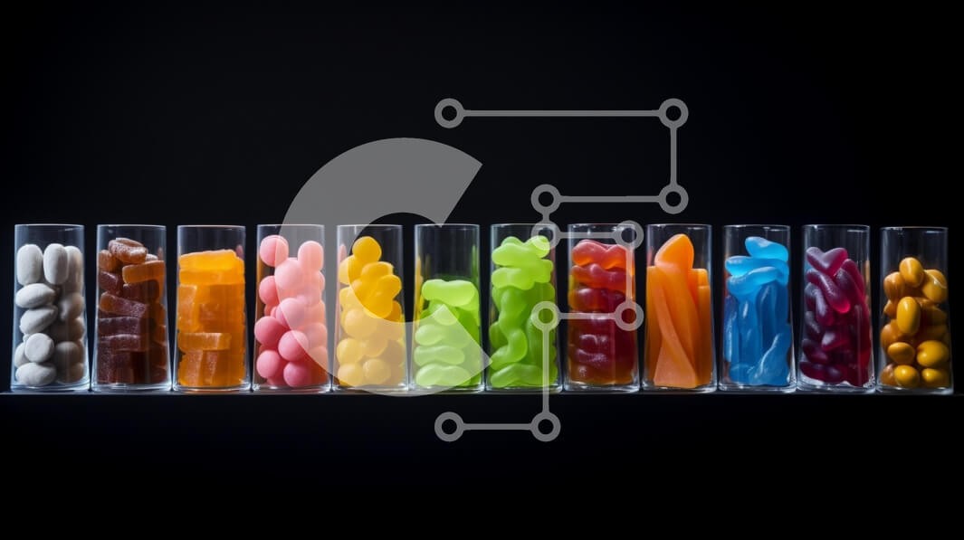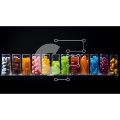 Υπάρχει δυνατότητα προσωποποίησης με δική σας φωτογραφία και προσαρμογής διαστάσεων κατόπιν παραγγελίας. Το συγεκεριμενο puzzle παρουσιαζει Αυτή η εικόνα εμφανίζει μια πολύχρωμη σειρά από ζαχαρωτά διατεταγμένα σε διαφανείς γυάλινους σωλήνες σε σκούρο φόντο. Κάθε σωληνάριο παρουσιάζει διαφορετικές ποικιλίες καραμέλας, συμπεριλαμβανομένων κομμένων σχημάτων και ζωντανών κομματιών ζελέ, δημιουργώντας μια εντυπωσιακή ο
