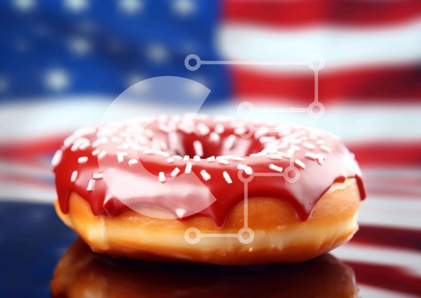 Υπάρχει δυνατότητα προσωποποίησης με δική σας φωτογραφία και προσαρμογής διαστάσεων κατόπιν παραγγελίας. Το συγεκεριμενο puzzle παρουσιαζει Αυτή η εικόνα δείχνει ένα πατριωτικό ντόνατ με κόκκινο παγωμένο και ψεκασμοί, τοποθετημένο μπροστά από φόντο αμερικανικής σημαίας. Ξυπνά το πνεύμα του εορτασμού της 4ης Ιουλίου και περιλαμβάνει πολλά άτομα, μεταξύ των οποίων δύο άνδρες και μία γυναίκα. Ένα μοναδικό puzzle που