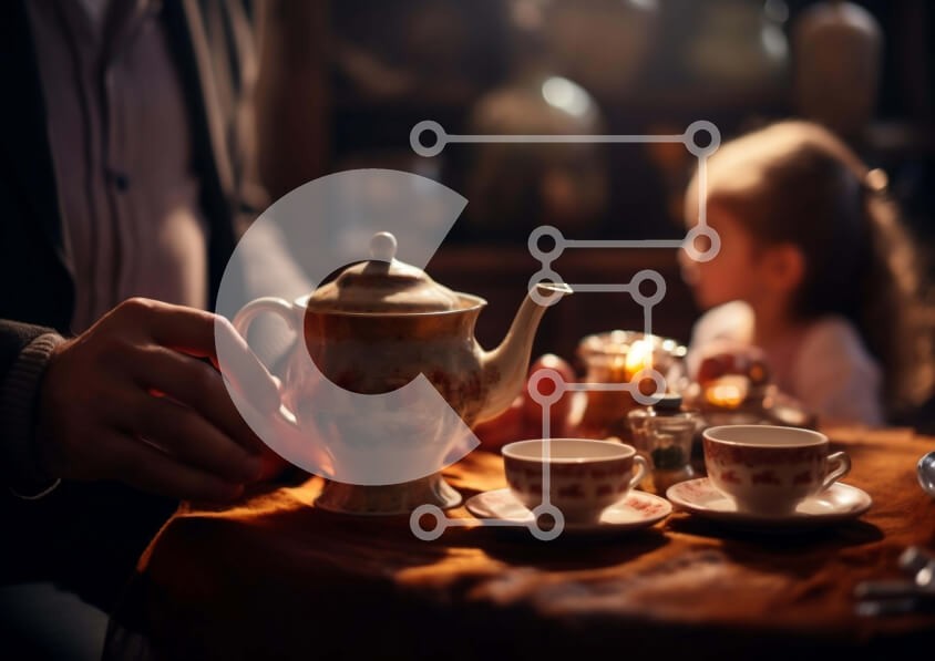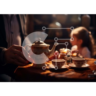 Υπάρχει δυνατότητα προσωποποίησης με δική σας φωτογραφία και προσαρμογής διαστάσεων κατόπιν παραγγελίας. Το συγεκεριμενο puzzle παρουσιαζει Η εικόνα δείχνει μια τσαγιέρα, φλιτζάνια και πιατάκια τοποθετημένα σε ένα τραπέζι με ένα κοριτσάκι να κάθεται δίπλα τους, πιθανώς να απολαμβάνει τσάι με την οικογένειά του. Μικρά πιάτα είναι επίσης ορατά στο τραπέζι, υπονοώντας δραστηριότητες προετοιμασίας φαγητού ή σερβιρίσμα