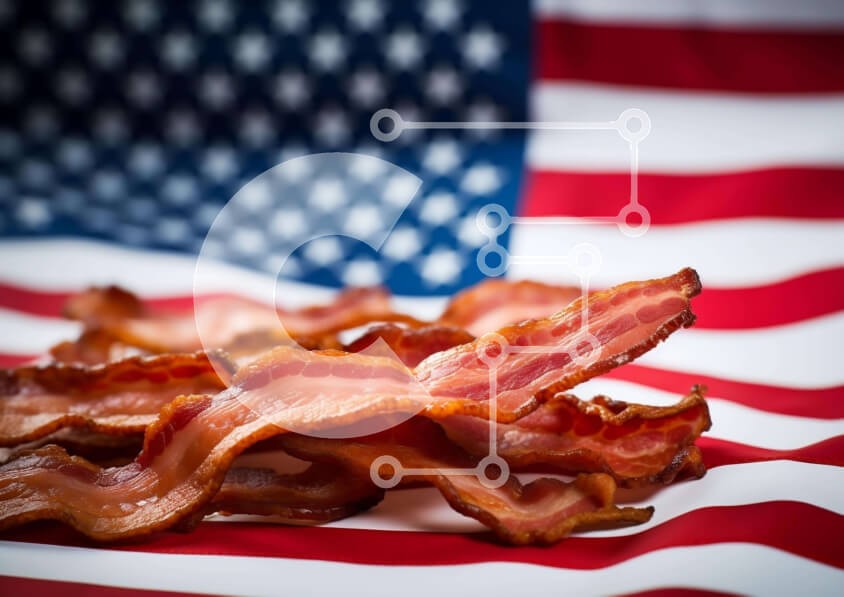 Υπάρχει δυνατότητα προσωποποίησης με δική σας φωτογραφία και προσαρμογής διαστάσεων κατόπιν παραγγελίας. Το συγεκεριμενο puzzle παρουσιαζει Αυτή η εικόνα δείχνει ένα σωρό μπέικον τοποθετημένο πάνω από μια αμερικανική σημαία. Το μπέικον είναι τοποθετημένο με τέτοιο τρόπο ώστε να ξεχωρίζει και να τραβήξει την προσοχή του θεατή. Χρησιμεύει ως ένα ευέλικτο θέμα, κατάλληλο τόσο για μαγείρεμα όσο και για κατανάλωση, καλ