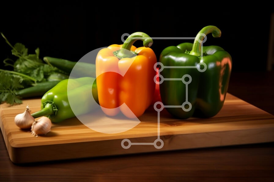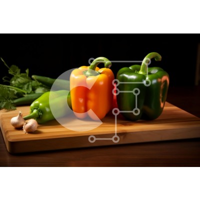 Υπάρχει δυνατότητα προσωποποίησης με δική σας φωτογραφία και προσαρμογής διαστάσεων κατόπιν παραγγελίας. Το συγεκεριμενο puzzle παρουσιαζει Αυτή η εικόνα παρουσιάζει μια πολύχρωμη διάταξη από πιπεριές σε μια ξύλινη σανίδα κοπής. Υπάρχουν τρεις πιπεριές σε διαφορετικά χρώματα: πράσινη, κίτρινη και πορτοκαλί. Επιπλέον, υπάρχουν δύο σκελίδες σκόρδο και μερικά φρέσκα βότανα, πιθανότατα κόλιανδρος, στο βάθος. Η σκηνή ε