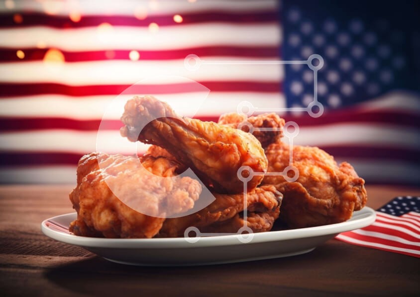 Υπάρχει δυνατότητα προσωποποίησης με δική σας φωτογραφία και προσαρμογής διαστάσεων κατόπιν παραγγελίας. Το συγεκεριμενο puzzle παρουσιαζει Αυτή η εικόνα παρουσιάζει νόστιμο τηγανητό κοτόπουλο σερβιρισμένο σε λευκό πιάτο με μια αμερικανική σημαία στο φόντο. Είναι πιθανό να προετοιμαστεί για το μεσημεριανό γεύμα ή το δείπνο κάποιου, πιθανώς για τον εορτασμό της 4ης Ιουλίου. Ένα μοναδικό puzzle που συνδυάζει ποιότη