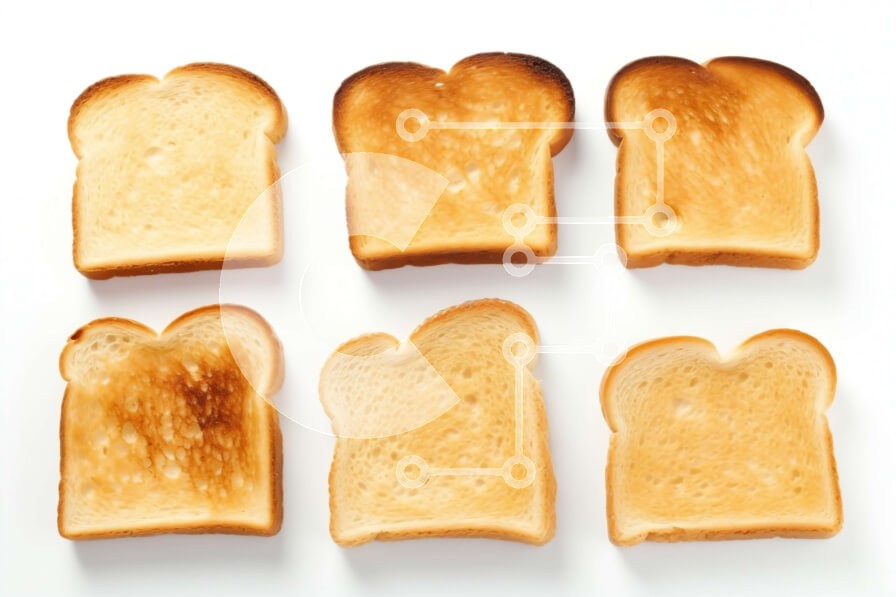 Υπάρχει δυνατότητα προσωποποίησης με δική σας φωτογραφία και προσαρμογής διαστάσεων κατόπιν παραγγελίας. Το συγεκεριμενο puzzle παρουσιαζει Αυτή η εικόνα παρουσιάζει έξι φέτες ψωμιού τοποθετημένες στη σειρά, με κάθε φέτα να έχει ελαφρώς διαφορετικό σχήμα. Οι φέτες κόβονται σε τέσσερα μέρη, καθιστώντας τις ιδανικές για τη δημιουργία σάντουιτς ή τοστ. Το λευκό φόντο επιτρέπει την εύκολη ορατότητα των φετών ψωμιού κα