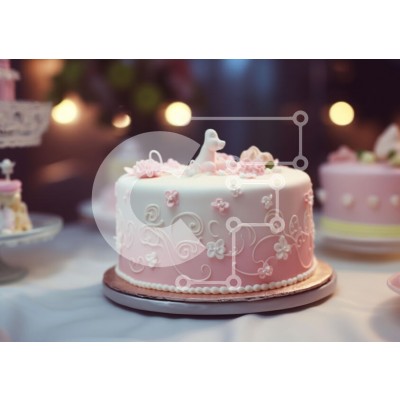 Υπάρχει δυνατότητα προσωποποίησης με δική σας φωτογραφία και προσαρμογής διαστάσεων κατόπιν παραγγελίας. Το συγεκεριμενο puzzle παρουσιαζει Η εικόνα παρουσιάζει ένα όμορφα διακοσμημένο κέικ με απαλό λευκό και ροζ πάγωμα. Είναι διακοσμημένο με ντελικάτα φλοράλ σχέδια και μικρά διακοσμητικά στοιχεία, συμπεριλαμβανομένης μιας χαριτωμένης φιγούρας στην κορυφή. Το κέικ παρουσιάζεται κομψά σε μια στρογγυλή βάση, σε ένα