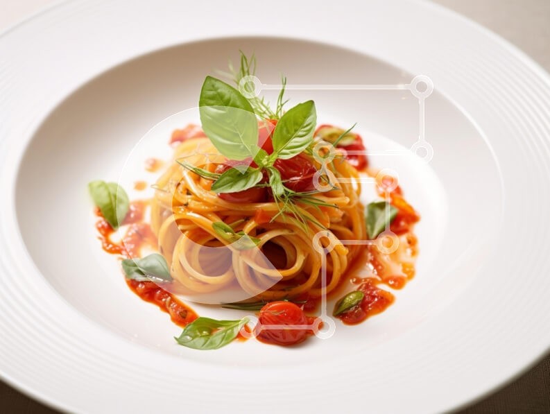 Υπάρχει δυνατότητα προσωποποίησης με δική σας φωτογραφία και προσαρμογής διαστάσεων κατόπιν παραγγελίας. Το συγεκεριμενο puzzle παρουσιαζει Ένα υπέροχα παρουσιασμένο πιάτο ζυμαρικών είναι διατεταγμένο περίτεχνα με νήματα από μακαρόνια στροβιλισμένα σε σχήμα φωλιάς. Περιχύνεται με μια ζωντανή σάλτσα ντομάτας, γαρνίρεται με φρέσκα φύλλα βασιλικού και μερικά ντοματίνια, προσθέτοντας μια έκρηξη χρώματος. Η ρύθμιση δια