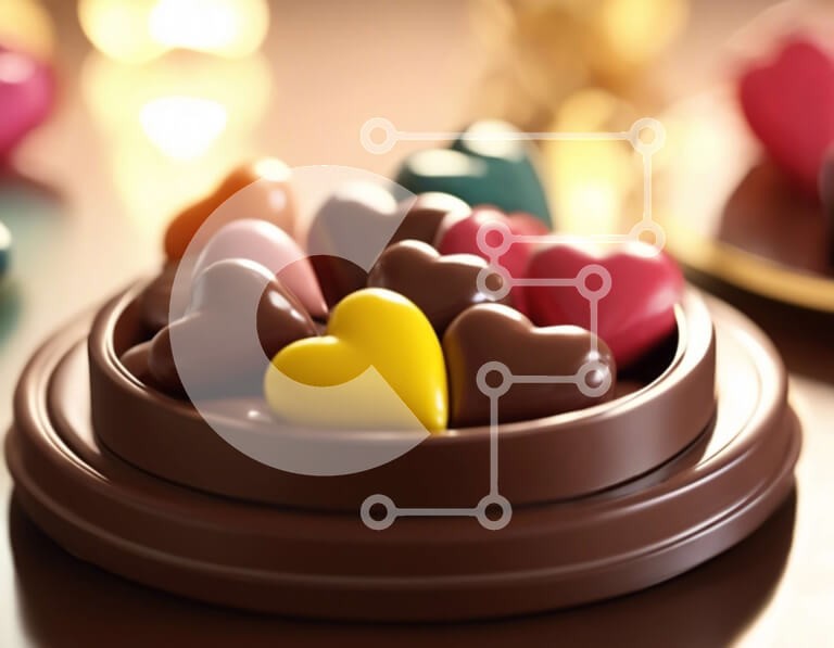 Υπάρχει δυνατότητα προσωποποίησης με δική σας φωτογραφία και προσαρμογής διαστάσεων κατόπιν παραγγελίας. Το συγεκεριμενο puzzle παρουσιαζει Αυτή η εικόνα παρουσιάζει ένα μπολ γεμάτο με πολύχρωμες καραμέλες σοκολάτας σε σχήμα καρδιάς. Οι καραμέλες τοποθετούνται σε διαφορετικά σημεία γύρω από το τραπέζι, με μερικά να φαίνονται στοιβαγμένα το ένα πάνω στο άλλο και άλλα απλωμένα ομοιόμορφα στο πιάτο. Υπάρχουν επίσης μ
