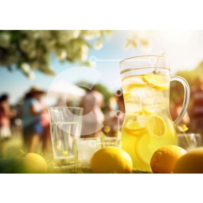Υπάρχει δυνατότητα προσωποποίησης με δική σας φωτογραφία και προσαρμογής διαστάσεων κατόπιν παραγγελίας. Το συγεκεριμενο puzzle παρουσιαζει Η εικόνα δείχνει μια στάμνα γεμάτη λεμονάδα, ποτήρια νερό και κόσμο που απολαμβάνει την ύπαιθρο. Μια ομάδα ατόμων κάθεται κοντά στη στάμνα, υπονοώντας μια υπαίθρια εκδήλωση ή συγκέντρωση. Οι φέτες λεμονιού στο τραπέζι υποδηλώνουν μια ατμόσφαιρα φεστιβάλ φρούτων. Ένα μοναδικό