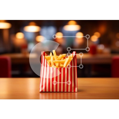 Υπάρχει δυνατότητα προσωποποίησης με δική σας φωτογραφία και προσαρμογής διαστάσεων κατόπιν παραγγελίας. Το συγεκεριμενο puzzle παρουσιαζει Η εικόνα παρουσιάζει ένα σακουλάκι με χρυσές τηγανιτές πατάτες, σε περίοπτη θέση σε ένα ριγέ κόκκινο και λευκό χάρτινο δοχείο. Οι πατάτες είναι φρέσκες και τραγανές, χύνονται ελαφρώς πάνω από το σακουλάκι. Το φόντο είναι απαλά θολό, δημιουργώντας μια ζεστή, φιλόξενη ατμόσφαιρα