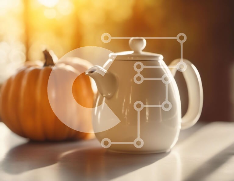 Υπάρχει δυνατότητα προσωποποίησης με δική σας φωτογραφία και προσαρμογής διαστάσεων κατόπιν παραγγελίας. Το συγεκεριμενο puzzle παρουσιαζει Αυτή η εικόνα παρουσιάζει μια λευκή τσαγιέρα και μια πορτοκαλί κολοκύθα τοποθετημένα σε ένα τραπέζι. Τα αντικείμενα λούζονται στο φως του ήλιου, δημιουργώντας μια ζεστή και φιλόξενη ατμόσφαιρα. Προτείνει τη δυνατότητα να σερβίρετε καφέ ή τσάι δίπλα στην κολοκύθα. Η σύνθεση της