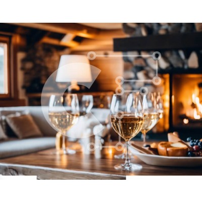 Υπάρχει δυνατότητα προσωποποίησης με δική σας φωτογραφία και προσαρμογής διαστάσεων κατόπιν παραγγελίας. Το συγεκεριμενο puzzle παρουσιαζει Αυτή η εικόνα παρουσιάζει τρία ποτήρια κρασιού σε ένα ξύλινο τραπέζι μπροστά από ένα ανοιχτό τζάκι. Στο τραπέζι τοποθετείται επίσης ένα μπολ με φρούτα, υποδηλώνοντας τη διαθεσιμότητα σνακ ή ορεκτικών. Σε κοντινή απόσταση, υπάρχουν πολλά κομμάτια ψωμιού που μπορείτε να τα βουτή
