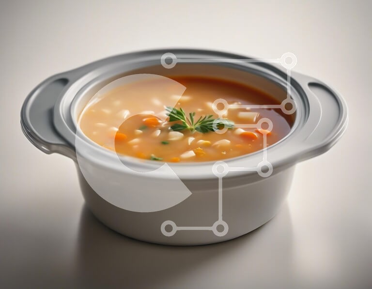 Υπάρχει δυνατότητα προσωποποίησης με δική σας φωτογραφία και προσαρμογής διαστάσεων κατόπιν παραγγελίας. Το συγεκεριμενο puzzle παρουσιαζει Αυτή η εικόνα δείχνει ένα μπολ με σούπα, γεμάτο με διάφορα λαχανικά, όπως καρότα και πατάτες. Η σούπα έχει ένα ζεστό, φιλόξενο χρώμα, που ενισχύεται από μια πινελιά πράσινου μαϊντανού από πάνω. Το μπολ είναι λευκό και στρογγυλό με χερούλια, τοποθετημένο σε ένα απαλό, ανοιχτόχρ