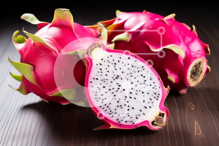 Υπάρχει δυνατότητα προσωποποίησης με δική σας φωτογραφία και προσαρμογής διαστάσεων κατόπιν παραγγελίας. Το συγεκεριμενο puzzle παρουσιαζει Αυτή η εικόνα παρουσιάζει δύο ολόκληρους καρπούς δράκου μαζί με έναν που έχει κοπεί στη μέση, αποκαλύπτοντας τη λευκή σάρκα του με στίγματα με μικροσκοπικούς μαύρους σπόρους. Η ζωηρή ροζ φλούδα των φρούτων ξεχωρίζει απέναντι στη σκούρα ξύλινη επιφάνεια στην οποία στηρίζονται.