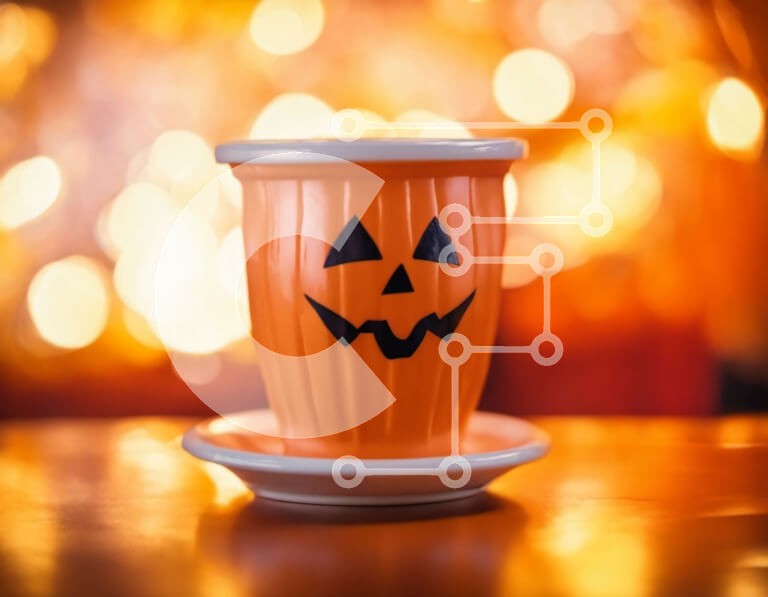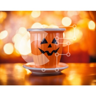 Υπάρχει δυνατότητα προσωποποίησης με δική σας φωτογραφία και προσαρμογής διαστάσεων κατόπιν παραγγελίας. Το συγεκεριμενο puzzle παρουσιαζει Αυτή η εικόνα δείχνει ένα πορτοκαλί φλιτζάνι καφέ με σχέδιο σε σχήμα κολοκύθας στο καπάκι. Το κύπελλο τοποθετείται πάνω από το πιατάκι του, το οποίο φαίνεται στο πρώτο πλάνο. Το φόντο διαθέτει πολλά φώτα, προσθέτοντας στην εορταστική ατμόσφαιρα των εορτασμών του Halloween. Έν