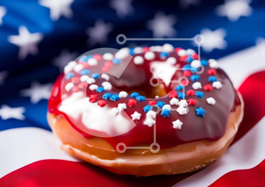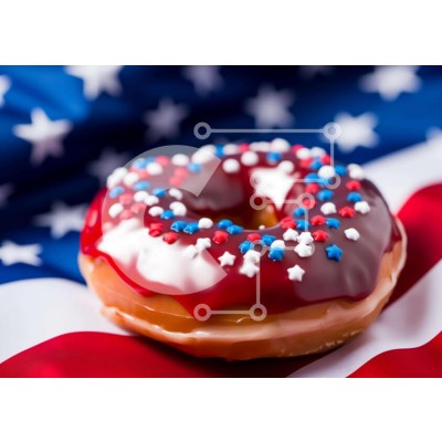 Υπάρχει δυνατότητα προσωποποίησης με δική σας φωτογραφία και προσαρμογής διαστάσεων κατόπιν παραγγελίας. Το συγεκεριμενο puzzle παρουσιαζει Αυτή η εικόνα δείχνει ένα πατριωτικό ντόνατ με κόκκινα, λευκά και μπλε πασπαλίσματα πάνω σε φόντο αμερικανικής σημαίας. Το ντόνατ τοποθετείται κεντρικά στην εικόνα, κάνοντάς το να φαίνεται μεγαλύτερο. Αρκετά αστέρια και ρίγες είναι ορατά στην επιφάνεια του ντόνατ, υποδεικνύοντ