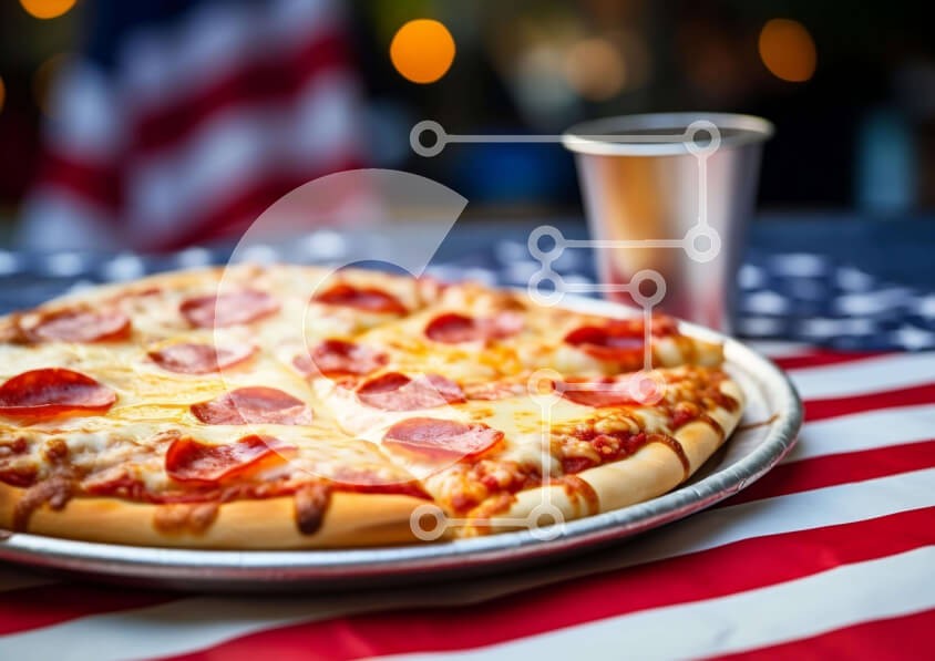 Υπάρχει δυνατότητα προσωποποίησης με δική σας φωτογραφία και προσαρμογής διαστάσεων κατόπιν παραγγελίας. Το συγεκεριμενο puzzle παρουσιαζει Αυτή η εικόνα παρουσιάζει μια νόστιμη πίτσα με πεπερόνι και τυρί, τοποθετημένη σε ένα τραπεζομάντιλο με αμερικανική σημαία. Ένα φλιτζάνι υπάρχει επίσης στο τραπέζι, προσθέτοντας στη γιορτινή ατμόσφαιρα. Αιχμαλωτίζει το αίσθημα χαράς και γιορτής που σχετίζεται με τις διακοπές τ