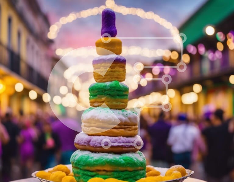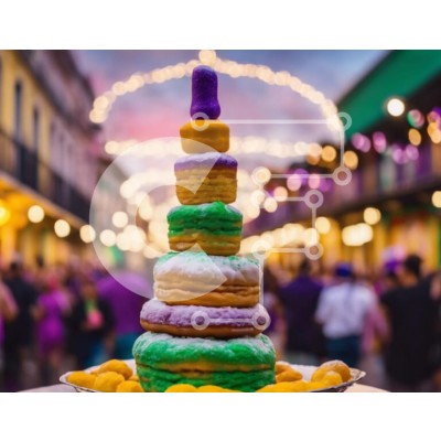 Υπάρχει δυνατότητα προσωποποίησης με δική σας φωτογραφία και προσαρμογής διαστάσεων κατόπιν παραγγελίας. Το συγεκεριμενο puzzle παρουσιαζει Αυτή η εικόνα παρουσιάζει μια στοίβα από πολύχρωμα ντόνατς διατεταγμένα σε σχήμα ανάποδης πυραμίδας. Η σκηνή υποδηλώνει μια ζωντανή εκδήλωση που λαμβάνει χώρα στη Νέα Ορλεάνη, με κόσμο να περπατά και να απολαμβάνει τις γιορτές. Τα ζωηρά χρώματα των ντόνατ δημιουργούν μια δελεα
