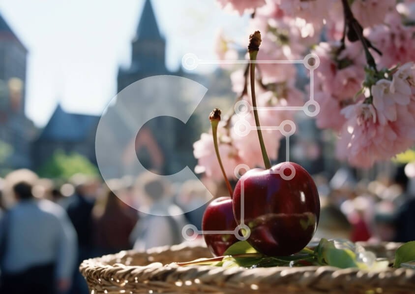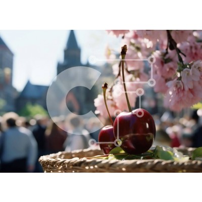 Υπάρχει δυνατότητα προσωποποίησης με δική σας φωτογραφία και προσαρμογής διαστάσεων κατόπιν παραγγελίας. Το συγεκεριμενο puzzle παρουσιαζει Η εικόνα παρουσιάζει ένα καλάθι με δύο κεράσια, το ένα από τα οποία φαίνεται στο πρώτο πλάνο. Ένα πλήθος κόσμου μπορεί να δει γύρω από το καλάθι, καθώς και πολλά κτίρια που φαίνεται να είναι διακοσμημένα με ροζ λουλούδια. Υπάρχουν επίσης πολλά άτομα που στέκονται κοντά στο κερ