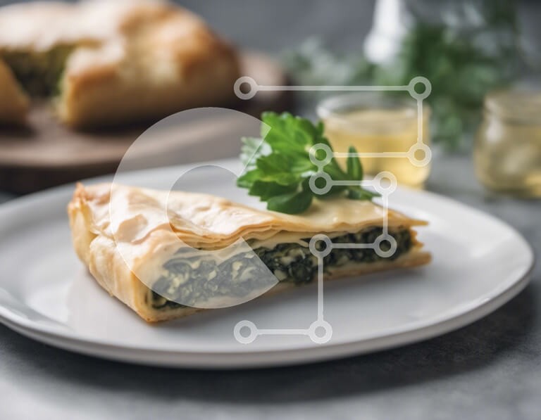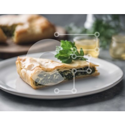 Υπάρχει δυνατότητα προσωποποίησης με δική σας φωτογραφία και προσαρμογής διαστάσεων κατόπιν παραγγελίας. Το συγεκεριμενο puzzle παρουσιαζει Αυτή η εικόνα παρουσιάζει ένα λευκό πιάτο με δύο φέτες σπανακόπιτας. Η πίτα γαρνίρεται με ένα κομμάτι μαϊντανού, προσθέτοντας μια νότα φρεσκάδας στο πιάτο. Συνοδεύοντας το γεύμα υπάρχουν πολλά μπουκάλια κρασί και άλλα ποτά, παρέχοντας μια ποικιλία επιλογών για να συμπληρώσουν