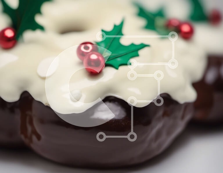 Υπάρχει δυνατότητα προσωποποίησης με δική σας φωτογραφία και προσαρμογής διαστάσεων κατόπιν παραγγελίας. Το συγεκεριμενο puzzle παρουσιαζει Αυτή η εικόνα δείχνει ένα ντόνατ σοκολάτας στολισμένο με φύλλα πουρνάρι και μούρα. Το ντόνατ τοποθετείται σε λευκή επιφάνεια, πιθανώς σε τραπέζι ή στο πάτωμα. Η παρουσία κόκκινων και πράσινων μούρων υποδηλώνει ότι δημιουργήθηκε την περίοδο των γιορτών. Ένα μοναδικό puzzle που
