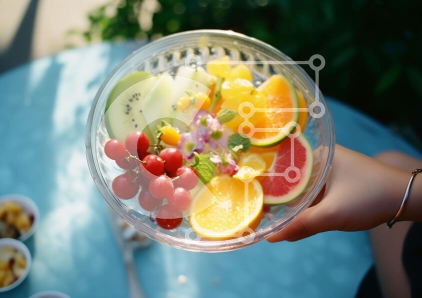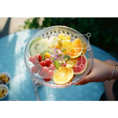 Υπάρχει δυνατότητα προσωποποίησης με δική σας φωτογραφία και προσαρμογής διαστάσεων κατόπιν παραγγελίας. Το συγεκεριμενο puzzle παρουσιαζει Η εικόνα απεικονίζει ένα χέρι που κρατά ένα ελκυστικό μπολ με φρούτα, όπως σταφύλια, ακτινίδια, φράουλες και πορτοκάλια. Υπάρχουν επίσης μικρά μπολ στο τραπέζι, τα οποία θα μπορούσαν να χρησιμοποιηθούν για να χωρέσουν άλλα τρόφιμα ή ποτά. Συνολικά, η εικόνα αποτυπώνει την ομορ